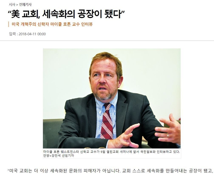 미국 개혁주의 신학자 마이클 호튼에 따르면, 미국교회는 세속화를 양산하는 주범이 되었다고 비판합니다.