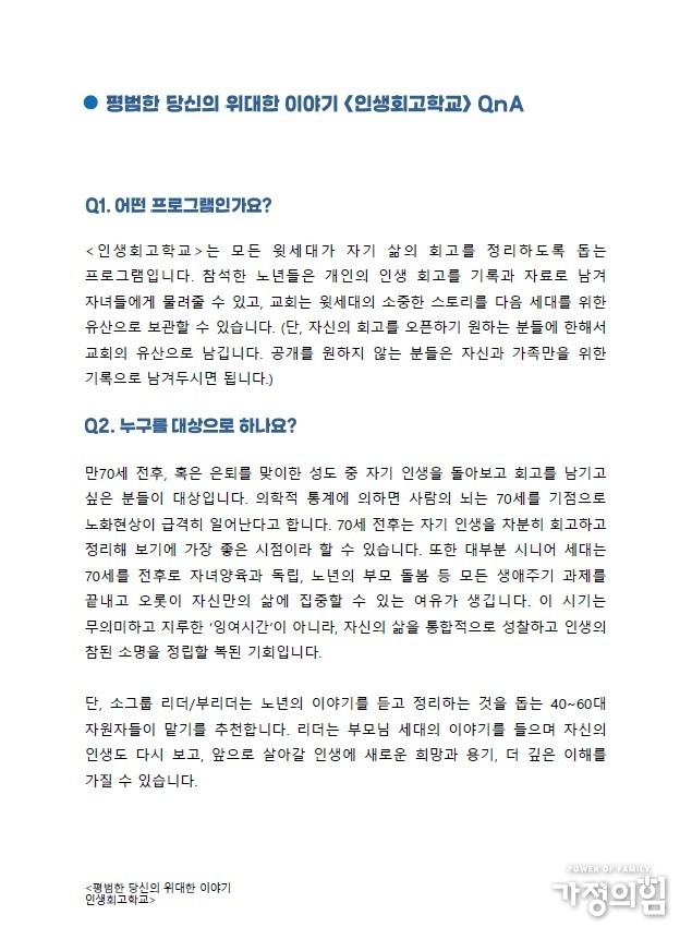 인생회고학교의 모든 자료는 한국 교회를 위해 무료로 오픈하니 자유롭게 수정과 사용이 가능합니다.